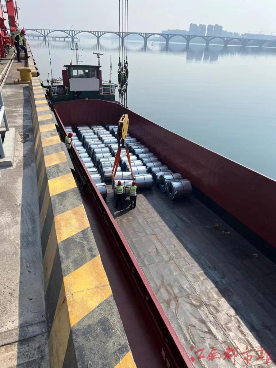 江南都市報(bào)訊 周逸程、全媒體記者章娜、實(shí)習(xí)生付鉦蘇、陳亦夫攝影報(bào)道:7月27日6時(shí)28分,吉安港新干港區(qū)河西綜合碼頭開(kāi)啟新余鋼鐵集團(tuán)第一批貨物的起吊裝船,標(biāo)志著新干港區(qū)河西綜合碼頭正式投產(chǎn)開(kāi)始試運(yùn)營(yíng)。