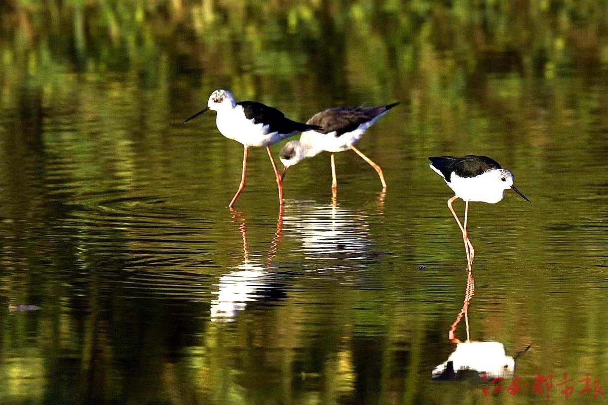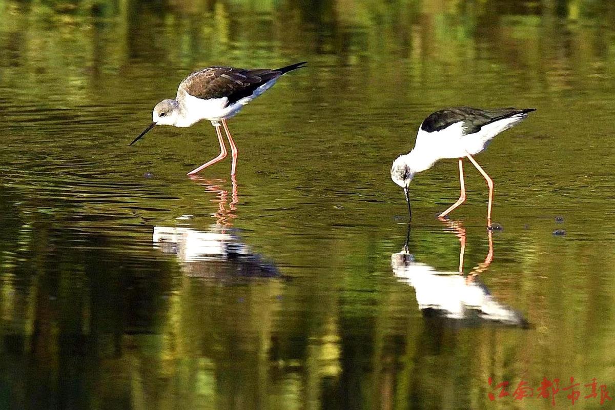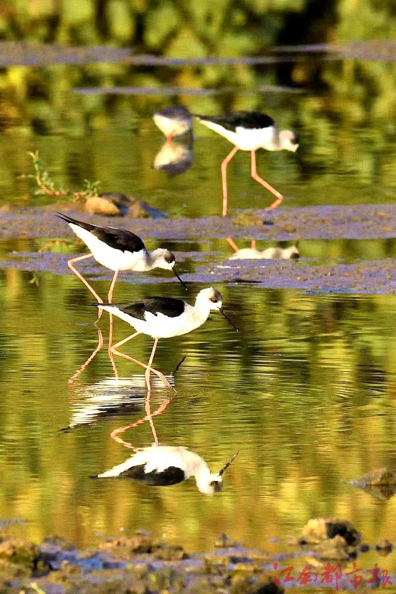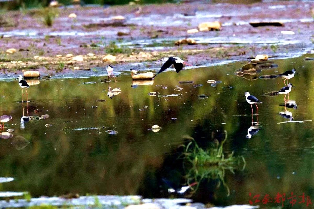 江南都市報訊 全媒體記者許南平攝影報道:1月3日,在鄱陽湖核心保護(hù)區(qū)永修吳城,百余只有著“水鳥模特”和“紅腿娘子”之稱的黑翅長腳鷸在湖區(qū)覓食、飛翔、嬉戲,構(gòu)成一幅美麗和諧的生態(tài)畫卷。據(jù)省野生動物保護(hù)協(xié)會志愿者、生態(tài)攝影師方克軍介紹,黑翅長腳鷸都擁有一副好身材,它們擁有黑色的翅膀和長長的紅色細(xì)腿,黑白紅三色分明,身材高挑,無論是行走還是飛翔,姿態(tài)都很優(yōu)雅,它的嘴細(xì)長而筆直,體白翅黑,對比分明。個頭不算太大,卻長了一雙30多厘米長的細(xì)腿,堪稱鳥界“超模”,它們喜歡在淺水或沼澤地上活動,邊走邊在地面或水面啄食。黑翅長腳鷸主要以軟體動物、蝦、甲殼類、環(huán)節(jié)動物、昆蟲,以及小魚和蝌蚪等動物為食。常單獨、成對或成小群棲息于開闊平原草地中的湖泊、淺水塘和沼澤地帶。
