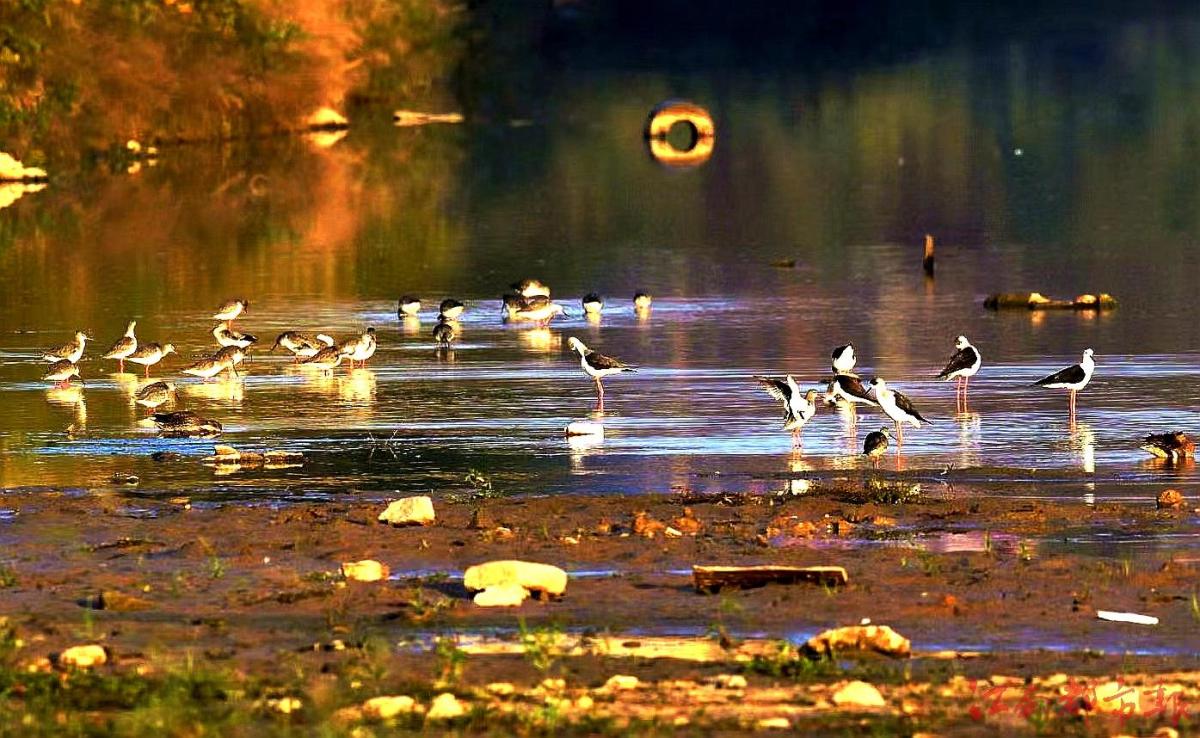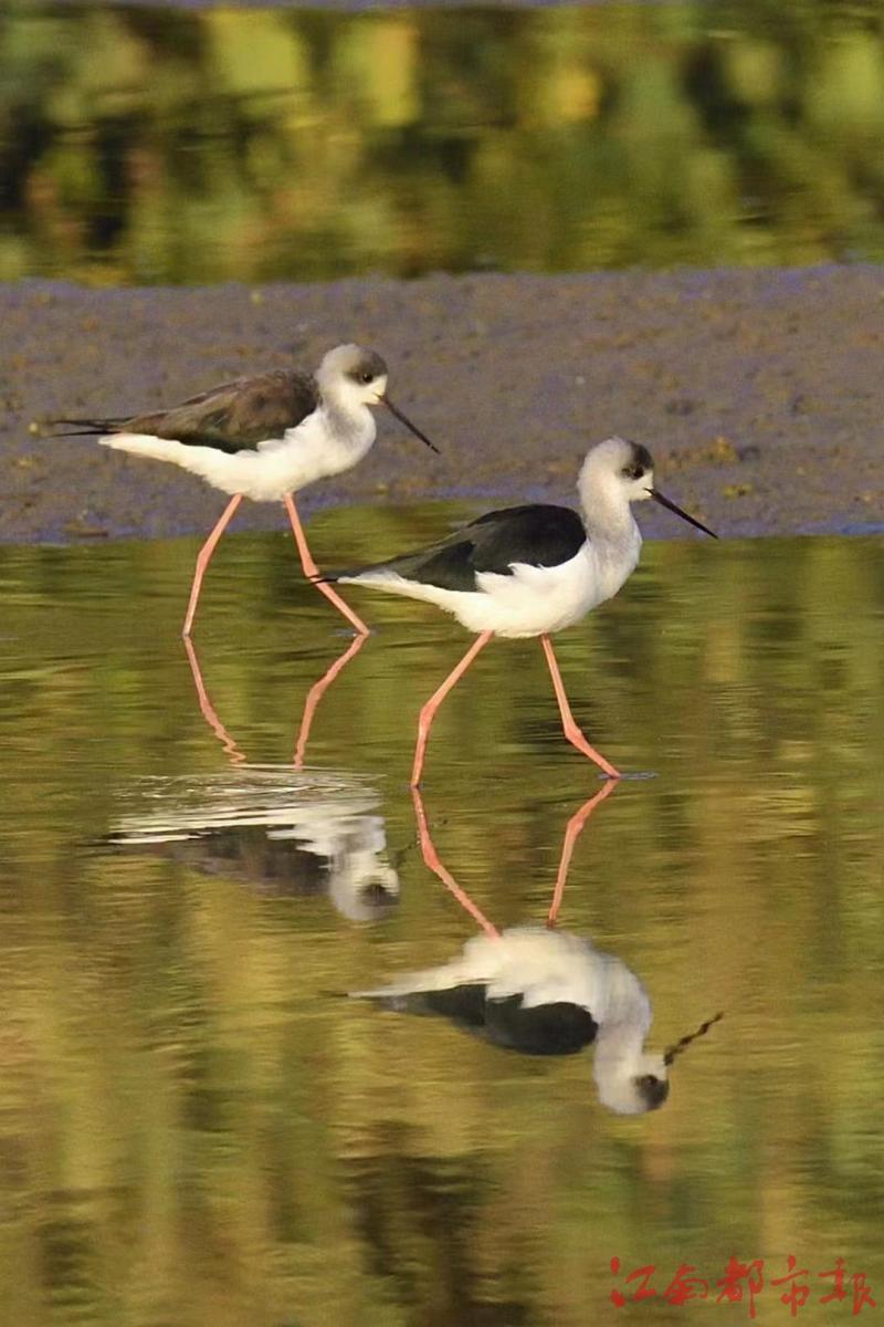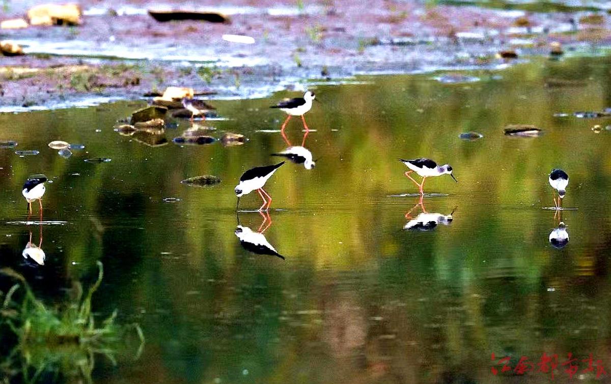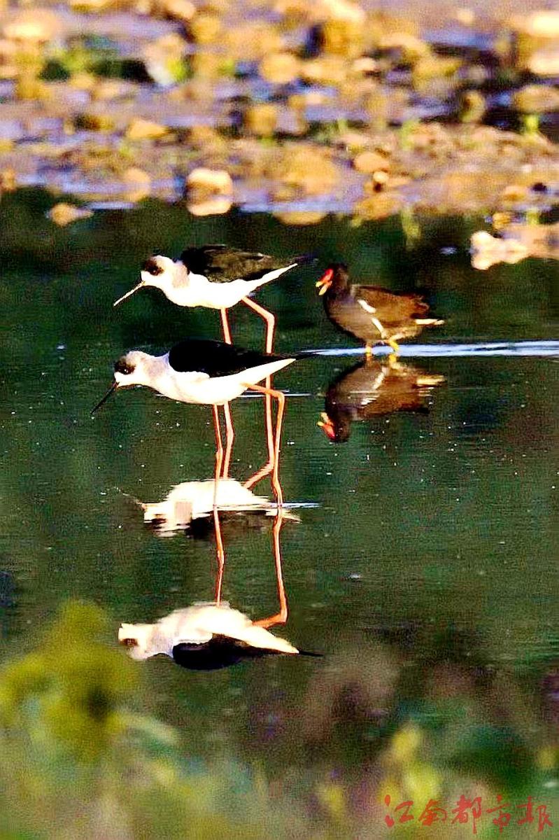 江南都市報訊 全媒體記者許南平攝影報道:1月3日,在鄱陽湖核心保護(hù)區(qū)永修吳城,百余只有著“水鳥模特”和“紅腿娘子”之稱的黑翅長腳鷸在湖區(qū)覓食、飛翔、嬉戲,構(gòu)成一幅美麗和諧的生態(tài)畫卷。據(jù)省野生動物保護(hù)協(xié)會志愿者、生態(tài)攝影師方克軍介紹,黑翅長腳鷸都擁有一副好身材,它們擁有黑色的翅膀和長長的紅色細(xì)腿,黑白紅三色分明,身材高挑,無論是行走還是飛翔,姿態(tài)都很優(yōu)雅,它的嘴細(xì)長而筆直,體白翅黑,對比分明。個頭不算太大,卻長了一雙30多厘米長的細(xì)腿,堪稱鳥界“超模”,它們喜歡在淺水或沼澤地上活動,邊走邊在地面或水面啄食。黑翅長腳鷸主要以軟體動物、蝦、甲殼類、環(huán)節(jié)動物、昆蟲,以及小魚和蝌蚪等動物為食。常單獨、成對或成小群棲息于開闊平原草地中的湖泊、淺水塘和沼澤地帶。