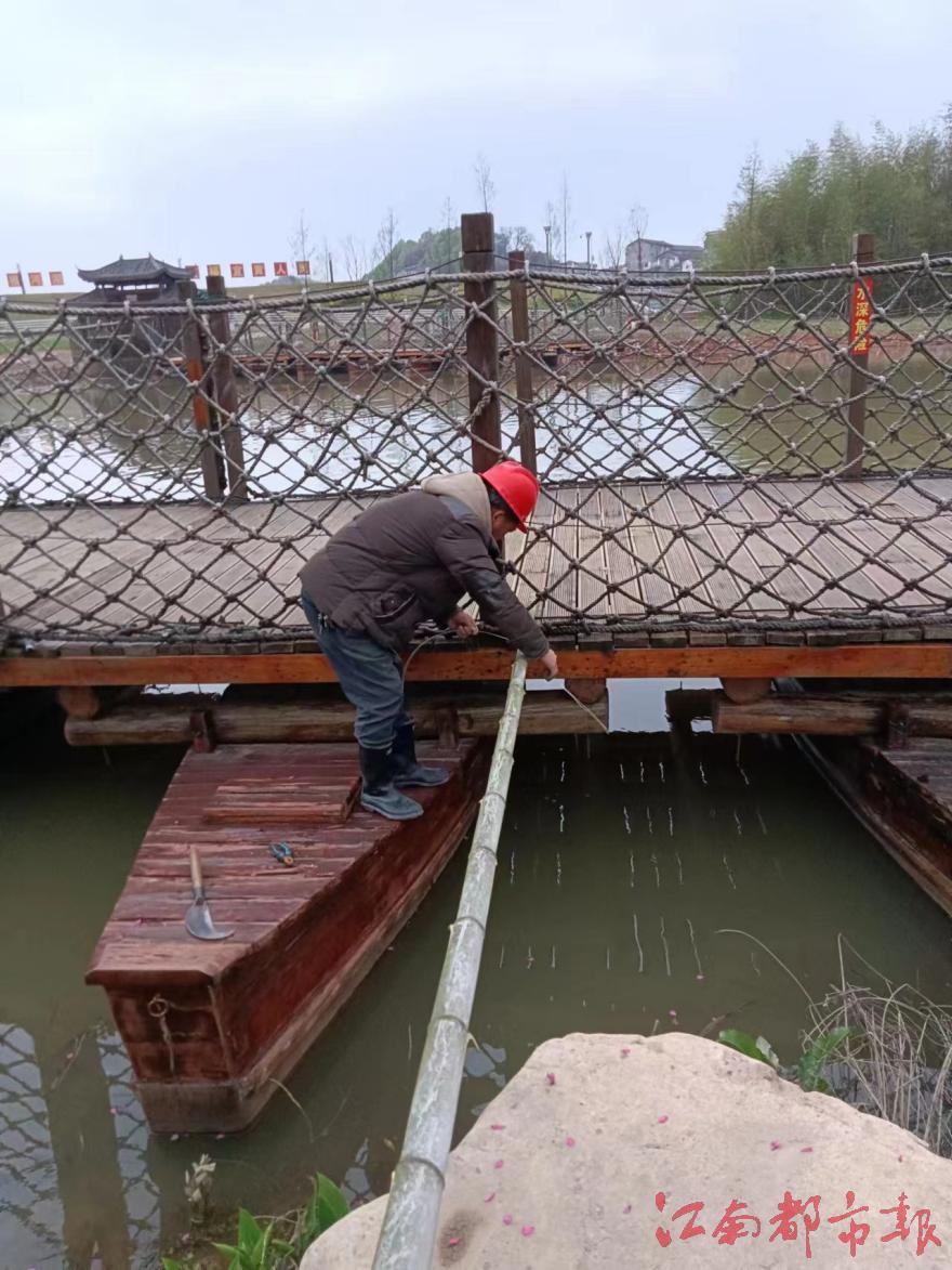 3月24日,在百花洲濕地公園沿河排查時(shí)發(fā)現(xiàn)河水水位上漲較快,對河上的浮橋產(chǎn)生較大安全隱患,為了消除隱患,該中心第一時(shí)間及時(shí)組織專業(yè)人員對橋體分解,轉(zhuǎn)移固定在安全區(qū)域,有效避免安全事故的發(fā)生。