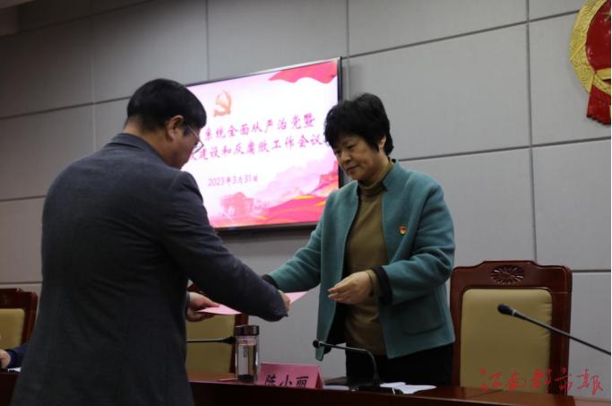 鷹潭市委教育工委書(shū)記、局長(zhǎng)陳小麗分別與其他局領(lǐng)導(dǎo)、各市屬院校、市直學(xué)校、局機(jī)關(guān)科室和直屬單位主要負(fù)責(zé)人現(xiàn)場(chǎng)簽訂2023年度黨風(fēng)廉政建設(shè)和反腐敗工作責(zé)任狀。(鷹潭市教育局)