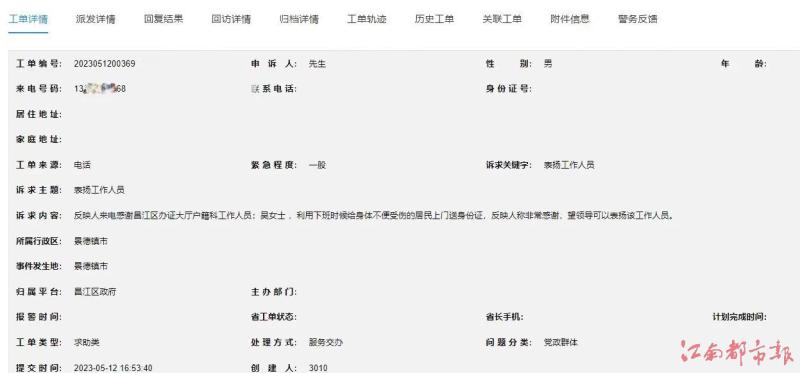 5月12日下午,昌江戶政接到一份特殊的“12345”市民服務(wù)熱線承辦單,與平日里接到的其他反饋不同,這是一封表揚信,感謝戶政窗口工作人員為其上門送證。