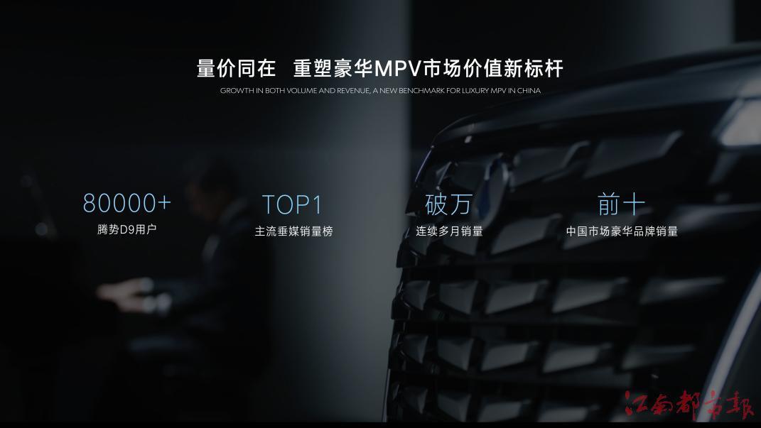 自煥新以來,騰勢D9收獲了80000+用戶朋友的青睞和選擇,銷量連續(xù)多個(gè)月破萬,而且在各大主流平臺,騰勢D9銷量強(qiáng)勢霸榜TOP1,真正的做到了量價(jià)同在,助力騰勢位居豪華品牌銷量榜(中國市場)的前列,其42萬的平均客單價(jià),是中國豪華市場上所有中國品牌的最高單價(jià),繼續(xù)以穩(wěn)健的姿態(tài)樹立豪華MPV市場價(jià)值新標(biāo)桿。