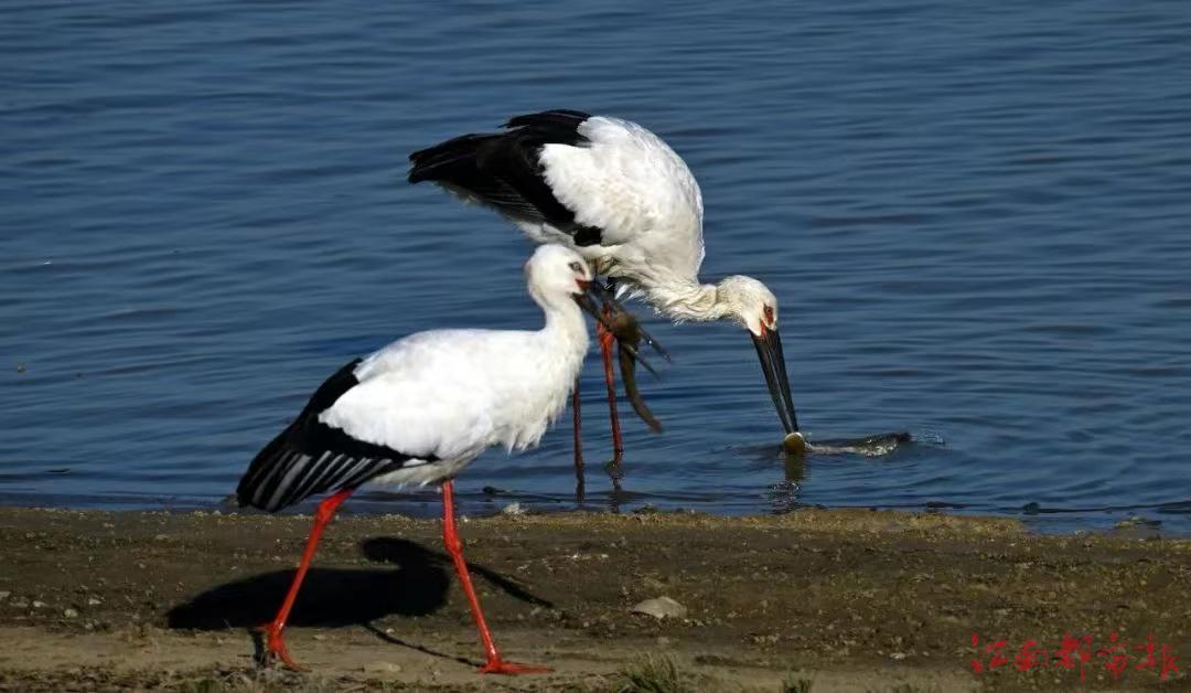 江南都市報(bào)訊 王小龍、全媒體記者王平攝影報(bào)道:10月8日至11日,江西鄱陽(yáng)湖國(guó)家級(jí)自然保護(hù)區(qū)管理局吳城保護(hù)管理站巡護(hù)員,在永修轄區(qū)湖內(nèi)陸續(xù)發(fā)現(xiàn)了國(guó)家一級(jí)保護(hù)動(dòng)物越冬候鳥(niǎo)——東方白鸛的蹤跡。作為越冬候鳥(niǎo)的先遣隊(duì)——東方白鸛的到來(lái),預(yù)示著今年候鳥(niǎo)越冬大幕已經(jīng)展開(kāi)!