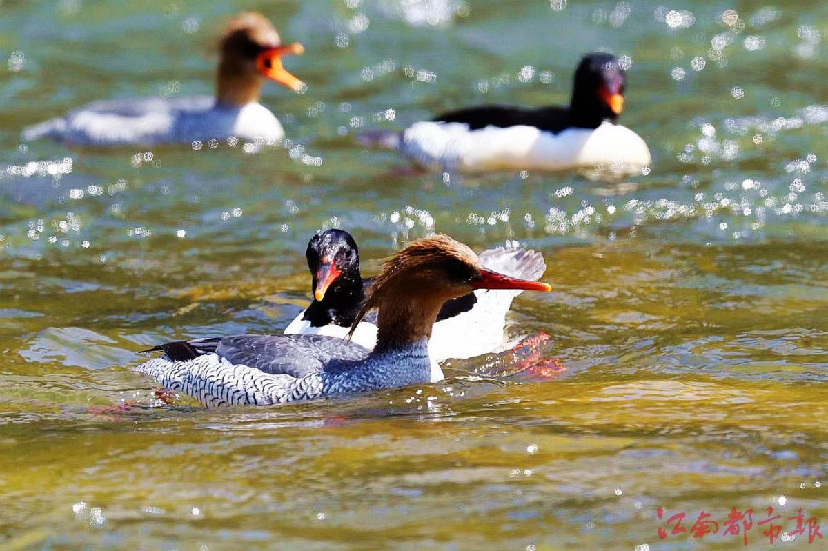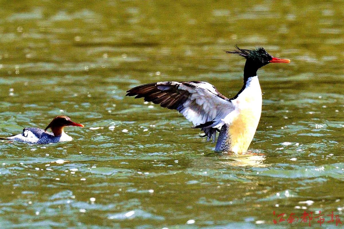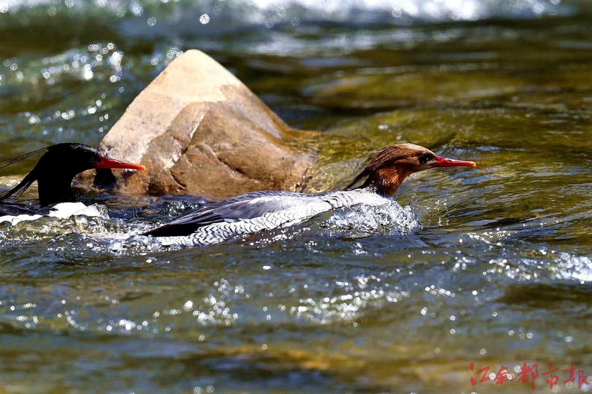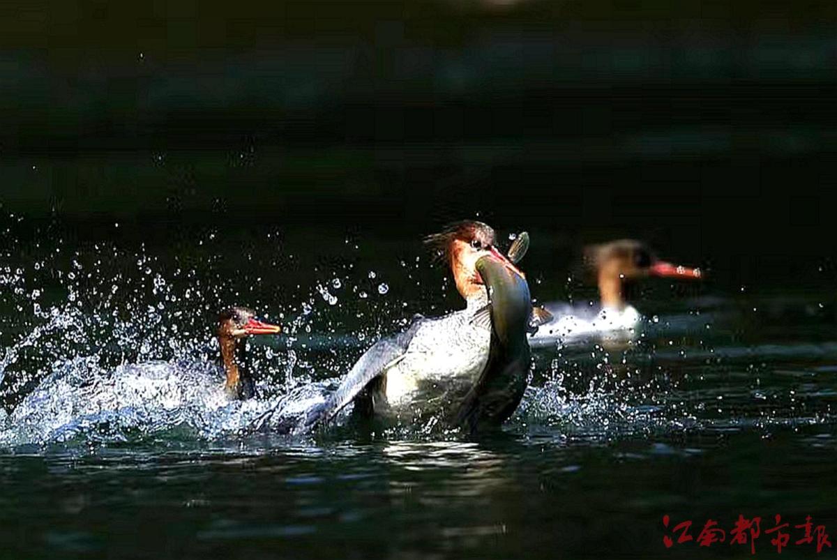 江南都市報(bào)訊 全媒體記者許南平攝影報(bào)道:11月26日,記者隨省野生動物保護(hù)協(xié)會志愿者一起,在鷹潭龍虎山風(fēng)景區(qū)拍攝“鳥中大熊貓”中華秋沙鴨。據(jù)悉,10月21日,第一批中華秋沙鴨來到這里,這已經(jīng)是中華秋沙鴨第17年飛抵龍虎山棲息越冬。龍虎山景區(qū)護(hù)林員肖冬樣告訴記者,目前,中華秋沙鴨越冬‘部隊(duì)’已經(jīng)陸續(xù)抵達(dá)。他和同事們會加強(qiáng)巡護(hù)看護(hù),記錄今年越冬中華秋沙鴨的數(shù)量、雌雄比例等信息。中華秋沙鴨是國家一級保護(hù)動物,被稱為“鳥中大熊貓”。每年3月末、4月初,中華秋沙鴨飛回北方,度過半年多的繁殖期后,于10月底南遷,在我國南方越冬,江西、湖南等地有較大種群數(shù)量分布。據(jù)了解,為了讓中華秋沙鴨有更好的越冬環(huán)境,龍虎山景區(qū)持續(xù)加大生態(tài)環(huán)境保護(hù)力度,于2008年初劃定1800公頃的保護(hù)區(qū),瀘溪河龍虎山景區(qū)段常年禁止捕魚。“中華秋沙鴨對棲息地生態(tài)環(huán)境要求很高,每年來此越冬的中華秋沙鴨數(shù)量穩(wěn)定在80只左右,最多時(shí)可達(dá)上百只。”肖冬樣介紹說,龍虎山景區(qū)已成中華秋沙鴨的主要越冬地之一。