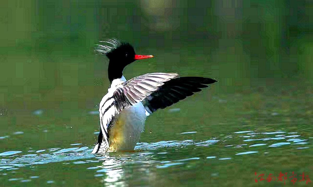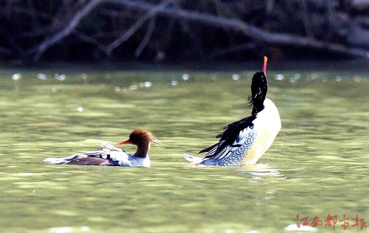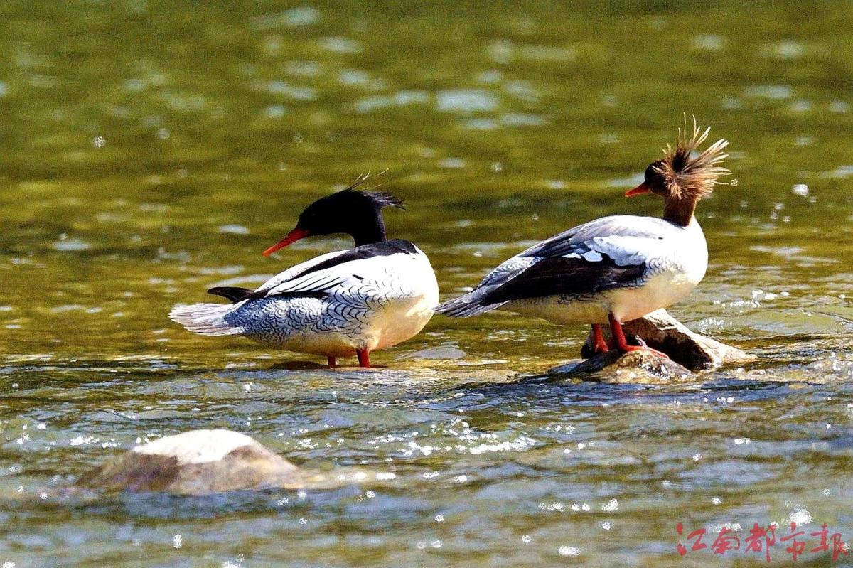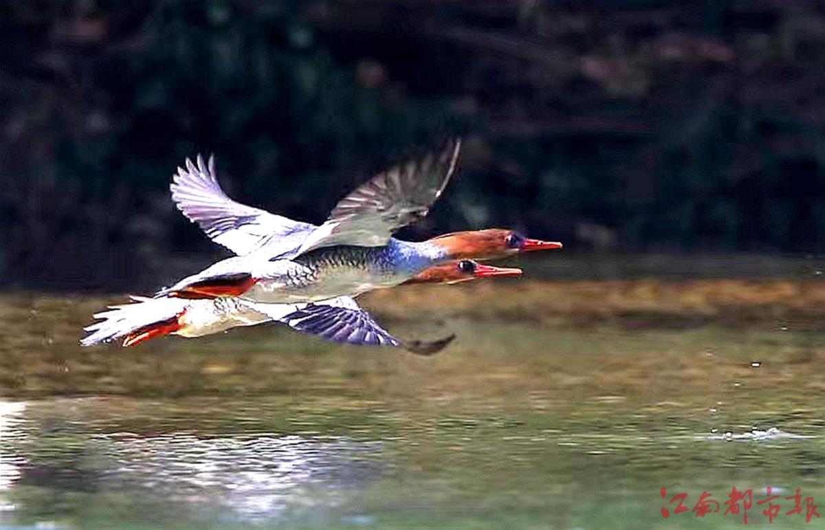江南都市報(bào)訊 全媒體記者許南平攝影報(bào)道:11月26日,記者隨省野生動物保護(hù)協(xié)會志愿者一起,在鷹潭龍虎山風(fēng)景區(qū)拍攝“鳥中大熊貓”中華秋沙鴨。據(jù)悉,10月21日,第一批中華秋沙鴨來到這里,這已經(jīng)是中華秋沙鴨第17年飛抵龍虎山棲息越冬。龍虎山景區(qū)護(hù)林員肖冬樣告訴記者,目前,中華秋沙鴨越冬‘部隊(duì)’已經(jīng)陸續(xù)抵達(dá)。他和同事們會加強(qiáng)巡護(hù)看護(hù),記錄今年越冬中華秋沙鴨的數(shù)量、雌雄比例等信息。中華秋沙鴨是國家一級保護(hù)動物,被稱為“鳥中大熊貓”。每年3月末、4月初,中華秋沙鴨飛回北方,度過半年多的繁殖期后,于10月底南遷,在我國南方越冬,江西、湖南等地有較大種群數(shù)量分布。據(jù)了解,為了讓中華秋沙鴨有更好的越冬環(huán)境,龍虎山景區(qū)持續(xù)加大生態(tài)環(huán)境保護(hù)力度,于2008年初劃定1800公頃的保護(hù)區(qū),瀘溪河龍虎山景區(qū)段常年禁止捕魚。“中華秋沙鴨對棲息地生態(tài)環(huán)境要求很高,每年來此越冬的中華秋沙鴨數(shù)量穩(wěn)定在80只左右,最多時(shí)可達(dá)上百只。”肖冬樣介紹說,龍虎山景區(qū)已成中華秋沙鴨的主要越冬地之一。