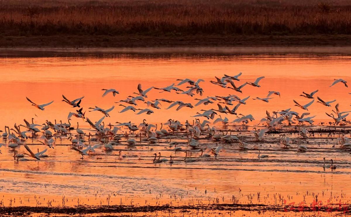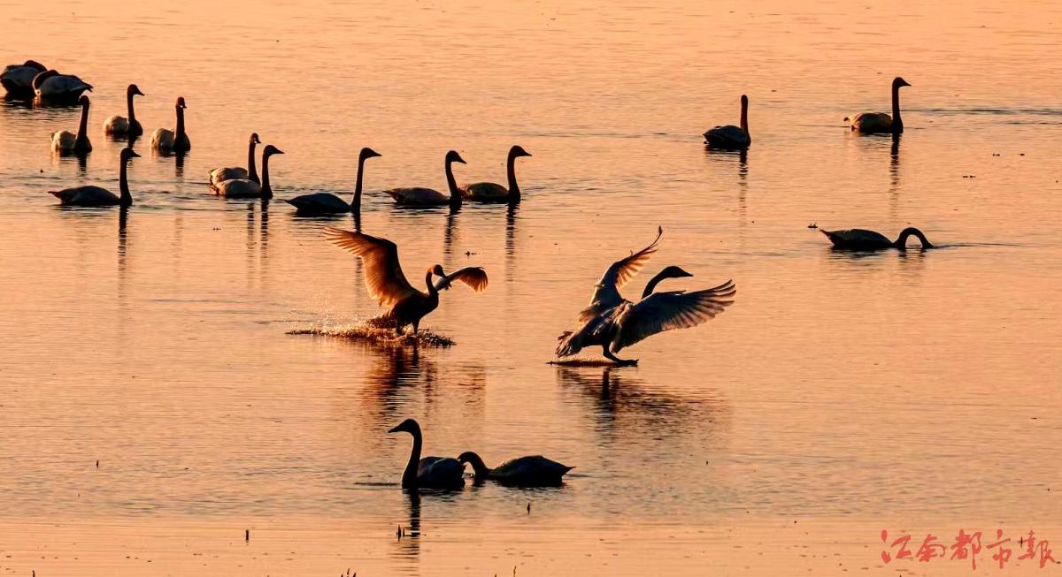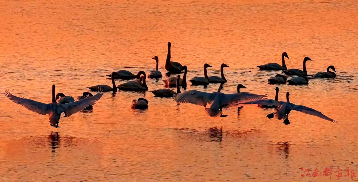 江南都市報訊 全媒體記者許南平攝影報道:12月14日,在進賢縣青嵐湖沿岸,成群的小天鵝在此聚集。這些白色精靈或獨行,或結伴,時而低頭覓食、時而凌空飛翔、時而游水嬉戲,情態(tài)各異、美妙絕倫,與周圍的景色交相呼應,形成一幅優(yōu)美動人的生態(tài)畫卷,為冬日的青嵐湖蛤蟆墩水域增添了無盡的生機與活力。據(jù)悉,每年11月開始,都會有大量的小天鵝選擇青嵐湖越冬。小天鵝是國家二級重點保護野生動物,喜歡群棲在湖泊和沼澤地帶,主要以水生植物為食。青嵐湖良好的自然生態(tài)環(huán)境使這里成為眾多候鳥越冬的棲息地。