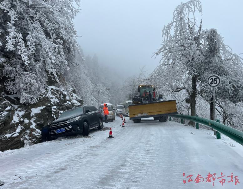 廬山公路結(jié)冰致車輛受困 公路部門開展救援