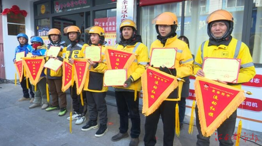 儀式現(xiàn)場為余江區(qū)“小個專”黨群服務中心和“余小新”愛心驛站進行揭牌,宣讀表彰了“共產(chǎn)黨員示范經(jīng)營戶”和“最美騎手”,分別為10名“共產(chǎn)黨員示范經(jīng)營戶”代表和8名“最美騎手”頒發(fā)獎牌、授流動紅旗及榮譽證書,并為戶外勞動者送上冬季暖心慰問品。(余江區(qū)市場監(jiān)管局)