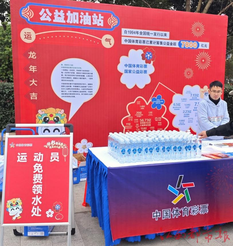 活潑可愛的體彩吉祥物樂小星也來到現(xiàn)場,受到不少選手和參觀市民的喜愛,他們紛紛爭先與樂小星合影留念?,F(xiàn)場的體彩公益宣傳展區(qū)、即開體驗區(qū),為活動現(xiàn)場增添了別樣的喜慶氛圍,吸引了廣大市民朋友的關(guān)注參與。體彩公益宣傳元素布滿了整個會場,“公益加油站”更是設(shè)有運動員免費領(lǐng)水處,為運動員加油助力。
