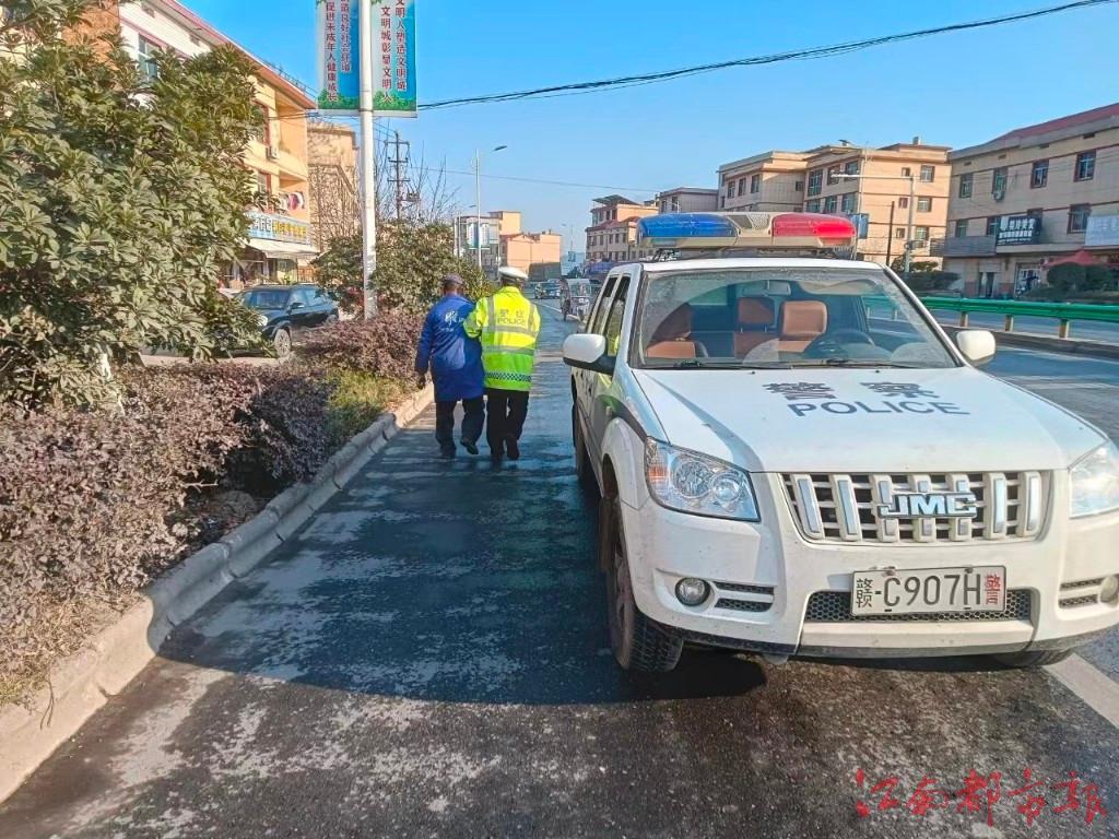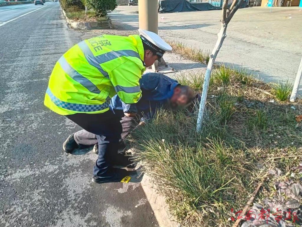 1月12日16時,上高交警大隊民警在轄區(qū)巡邏至上高縣斜口紅綠燈路段時,發(fā)現(xiàn)馬路邊的花壇里伸出兩條腿,腿一直伸到了馬路上,看上去非常危險。民警下車查看情況,原來是一名老人,醉得不省人事,上半身倒在路邊的花壇里,腿則伸到了馬路上,路上車來車往,與老漢擦身而過,存在極大的安全隱患。