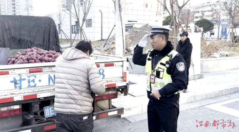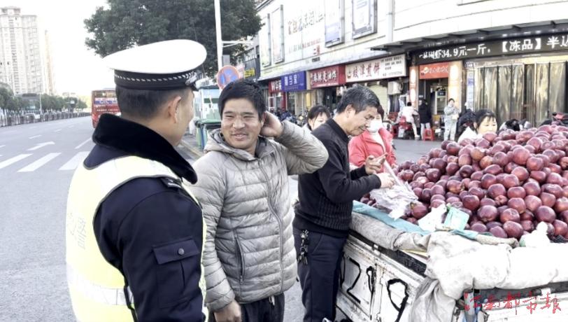 江南都市報訊 周玉峰、全媒體記者余文斌攝影報道:1月19日,一則“浮梁交警暖心執(zhí)法,勸導(dǎo)在街口違規(guī)停放車輛,占道經(jīng)營的外地男子駛離現(xiàn)場”的視頻在網(wǎng)絡(luò)上火了!記者從浮梁縣交警大隊獲悉,視頻記錄的事情發(fā)生在13日下午,一個外地男子從甘肅駕車來到當(dāng)?shù)亟诸^售賣蘋果,卻沒有意識到他停放車輛的行為屬于違規(guī)停放,影響了道路暢通和交通安全。浮梁交警的做法是,勸導(dǎo)外地男子駛離路口,不進行任何經(jīng)濟處罰,保障道路交通暢通的同時,讓該男子在異鄉(xiāng)感受到來自浮梁交警的溫暖。