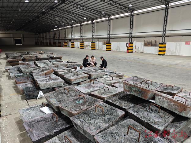 江南都市報訊 李麗環(huán)、全媒體記者趙瓊攝影報道:2月18日,龍年新春首個工作日,在鷹潭國際陸港保稅倉外停滿了等待卸車的集裝箱貨車,工人們正熟練地操作叉車,將進口自馬來西亞和泰國的銅錠進行卸車存放。