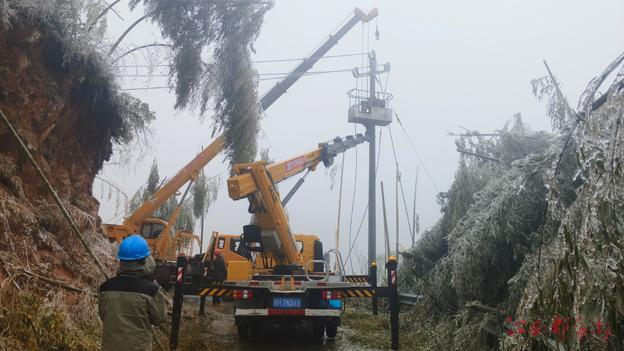 針對電網(wǎng)停電受損情況,該公司快速行動,全面啟動應(yīng)對雨雪冰凍天氣應(yīng)急會商機制,設(shè)置臨時應(yīng)急搶修指揮部。“因凍雨導(dǎo)致停運的金竹山部分線路,直接影響到沿線居民的正常生產(chǎn)生活,23日上午7時,公司組織了由40余人組成的3支搶修突擊隊,第一時間趕赴故障地區(qū)進行搶修作業(yè)。”國網(wǎng)浮梁縣供電公司鵝湖供電所鄭少華所長介紹,搶修隊員當時面臨的困難很大,有些施工區(qū)域的路面結(jié)冰樹木倒伏導(dǎo)致道路受阻,為了早點抵達施工現(xiàn)場,隊員們就背著搶修工具棄車徒步趕到現(xiàn)場,第一時間清理線路上倒伏的樹木和山竹,爬上結(jié)冰的燈桿清除線路上的覆冰……