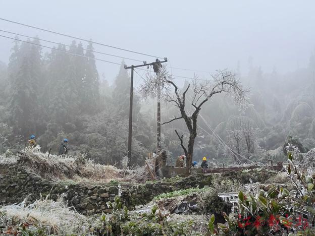 江南都市報訊 余莉莎、黃帥、全媒體記者余文斌攝影報道:2月26日,記者從國網(wǎng)浮梁縣供電公司獲悉,連日凍雨導(dǎo)致部分山區(qū)供電線路停運,該縣組織電力搶修突擊隊,連續(xù)冒著山區(qū)的嚴寒低溫進行破冰清障等維修作業(yè),以實際行動守護沿線居民生產(chǎn)生活。