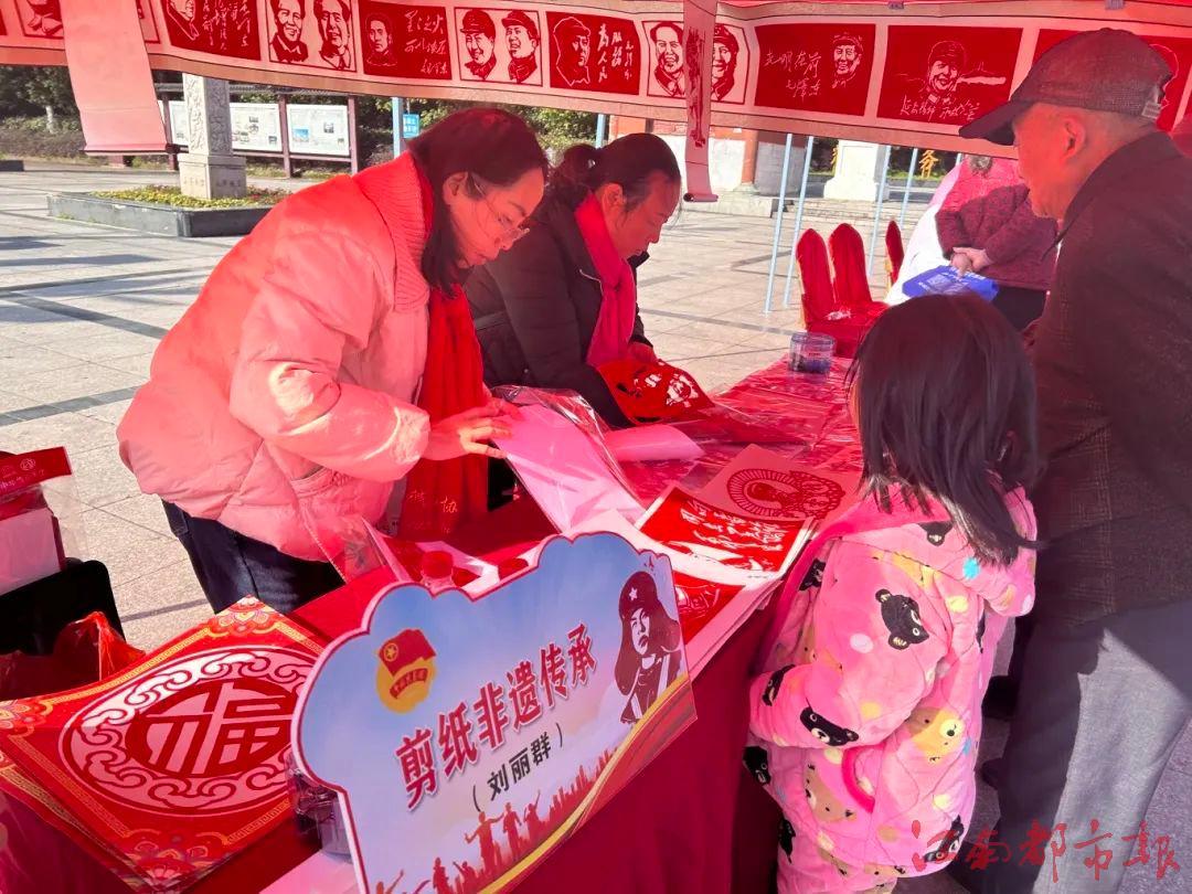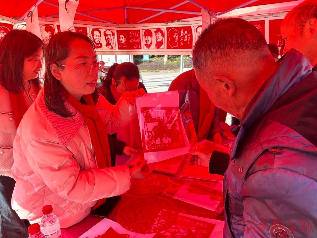 南城縣老年大學的劉麗群老師帶領(lǐng)剪紙愛好者們用靈巧的雙手剪出一幅幅精巧細膩的雷鋒主題剪紙作品,贈予來往市民,致敬雷鋒精神。