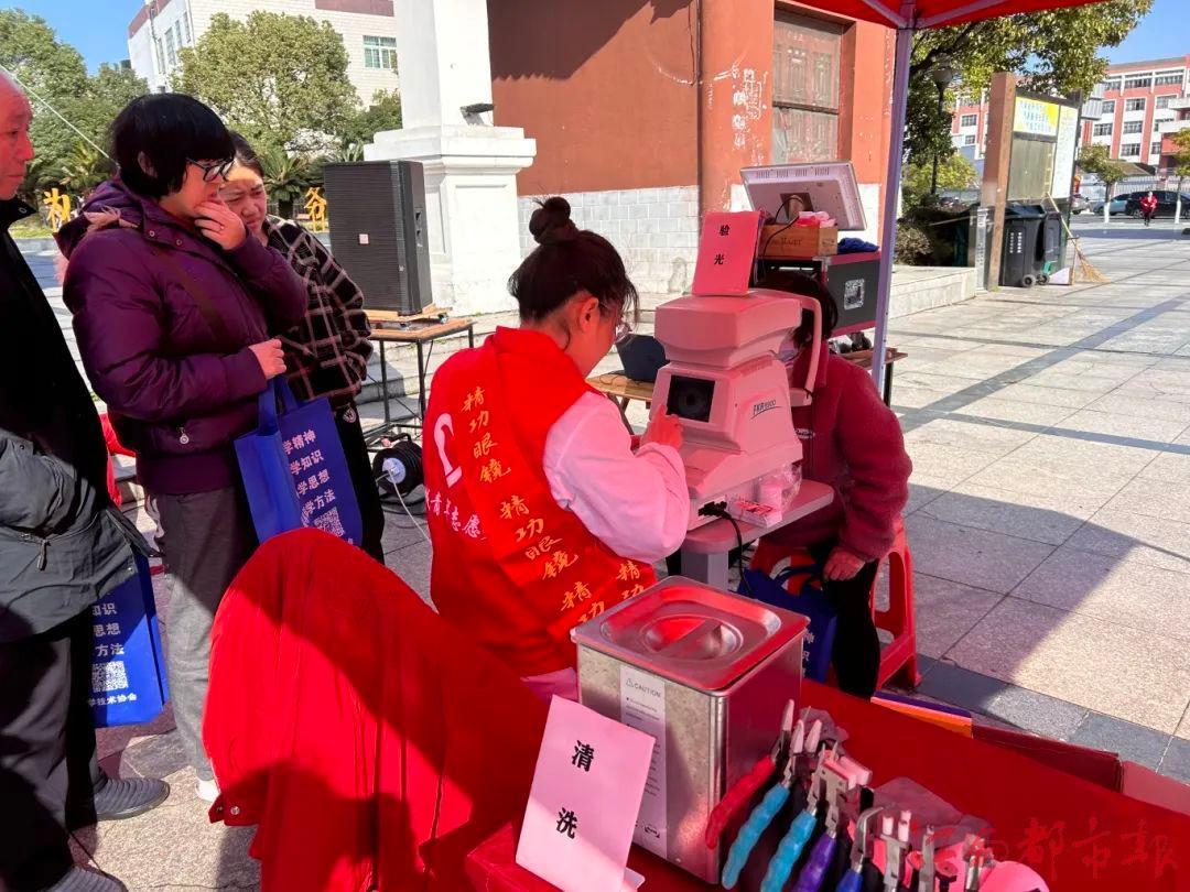 愛心商戶精功眼鏡店的志愿者免費為市民測視力,清洗眼鏡等。