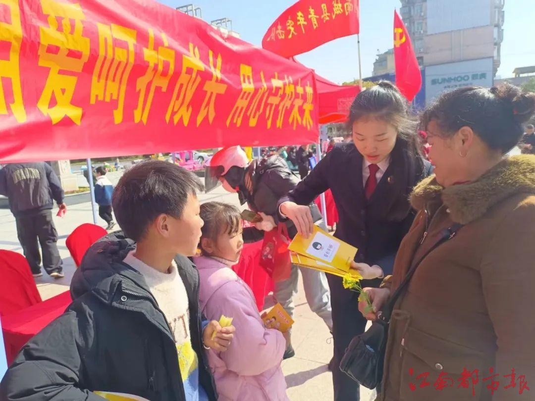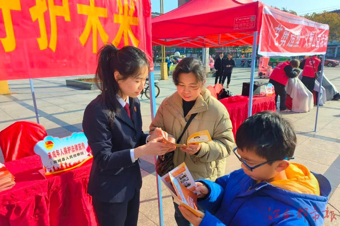 南城縣人民檢察院的檢察官們通過發(fā)放精美的宣傳頁向過往群眾現(xiàn)場講解“中華人民共和國未成年人保護法”,利用通俗易懂的語言深入淺出地解析了“網(wǎng)絡(luò)保護”“司法保護”“社會保護”“家庭保護”“學校保護”“自我保護”等相關(guān)內(nèi)容的現(xiàn)實意義,引導(dǎo)廣大群眾加深對保護未成年人工作的認識與理解。