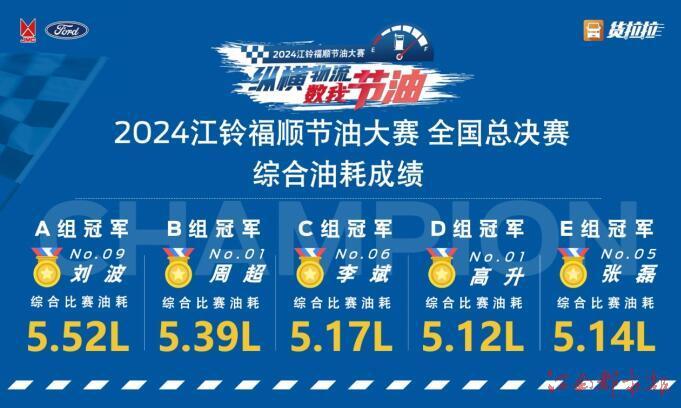 經(jīng)過三個多月初賽和復(fù)賽的激烈角逐,“縱橫物流,數(shù)我節(jié)油”2024江鈴福順節(jié)油大賽全國總決賽于7月20日在南昌火熱開賽。來自全國各地的貨運高手,通過與江鈴福順的默契配合,工作中練就的省油技巧,跑出超低油耗紀(jì)錄。劉波、周超、李斌、高升、張磊五位選手以小組第一名的好成績榮獲“福順節(jié)油王”,贏得萬元大獎。其中高升取得的綜合比賽油耗5.12L全場最佳,成為2024江鈴福順節(jié)油大賽“全國總冠軍”。而江鈴福順“節(jié)油高效”性能也是深入人心。
