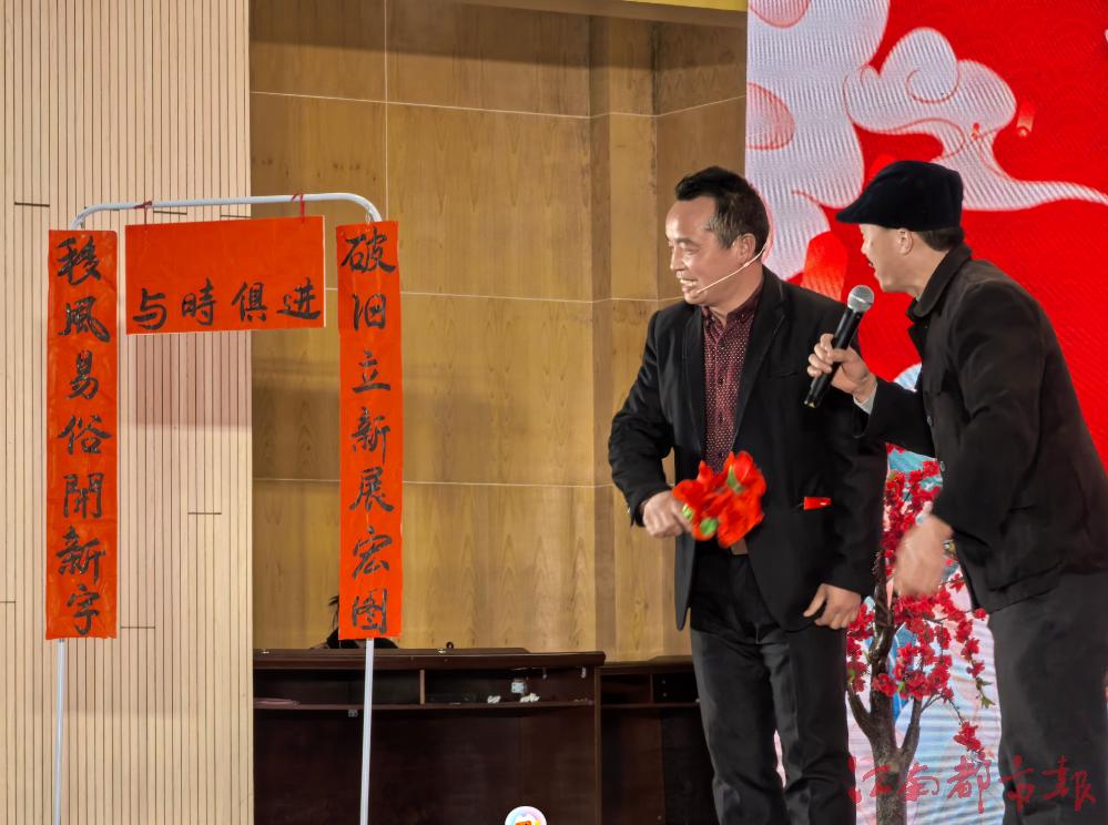 江南都市報(bào)訊 蘭春、蔣麗、彭樹美、全媒體記者盧勇攝影報(bào)道:“婚喜事,簡(jiǎn)辦好;講文明,樹新風(fēng);不攀比,無(wú)煩惱……”近日,在吉安市青原區(qū)新圩鎮(zhèn)移風(fēng)易俗優(yōu)秀典型頒獎(jiǎng)文藝匯演上,由該鎮(zhèn)自編自導(dǎo)自演的采茶戲《阿東相親》等節(jié)目贏得群眾陣陣掌聲。