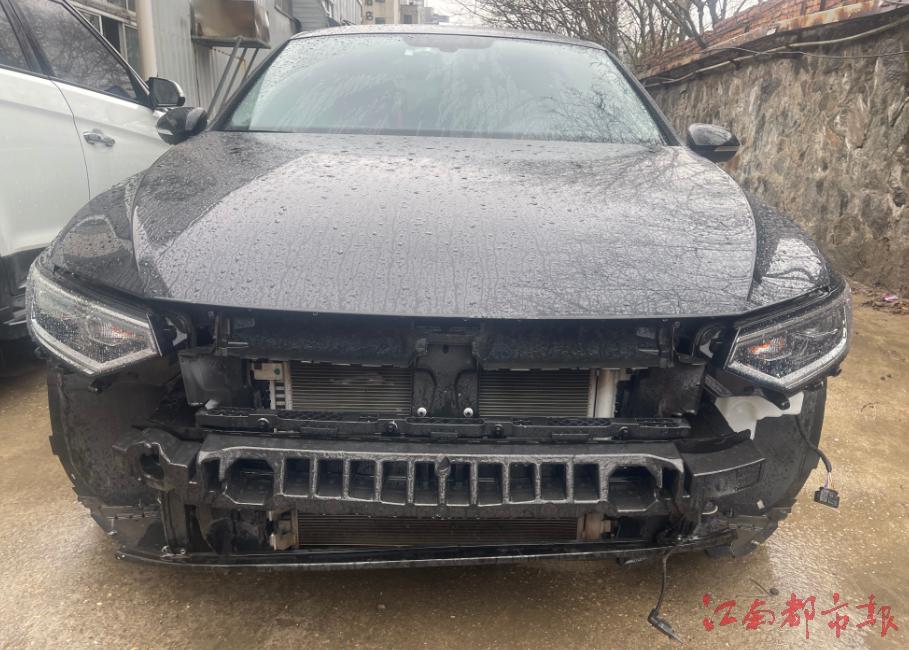 2月16日,記者來到位于青山湖區(qū)洪都中大道的一汽大眾江西協(xié)眾4S店了解情況。在車輛停放處看到,羅女士的車保險(xiǎn)杠、內(nèi)梁、底盤等都受到損壞。
