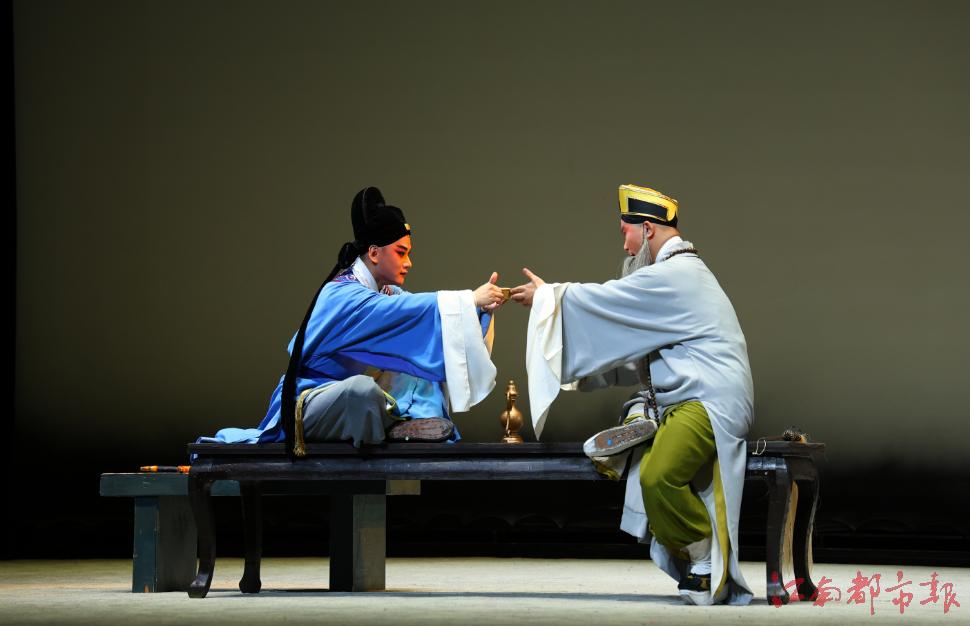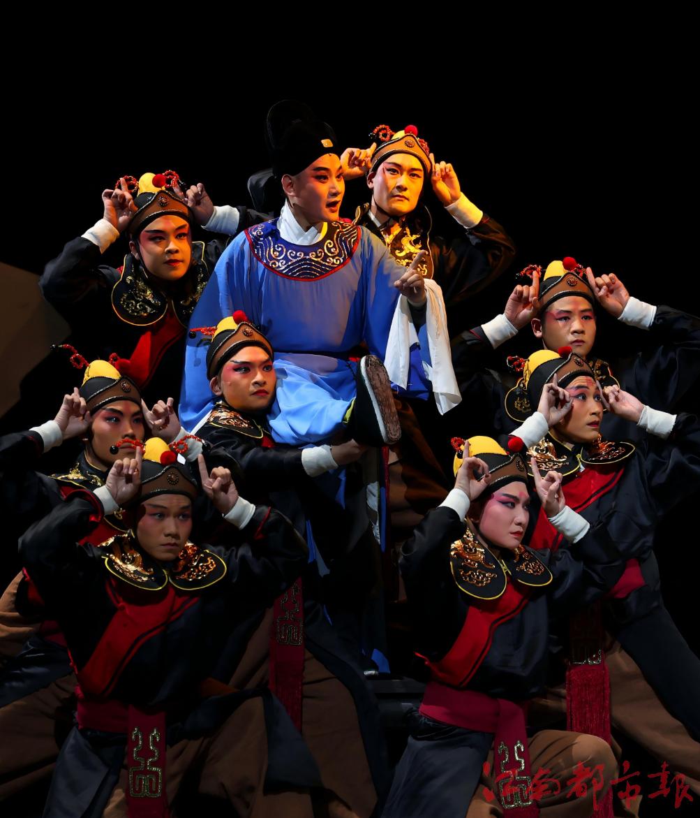 作為江西省贛劇院的“圓夢(mèng)”之作,《南柯記》匯聚了強(qiáng)大的主創(chuàng)陣容:特邀國家一級(jí)編劇羅周執(zhí)筆、國家一級(jí)導(dǎo)演徐春蘭執(zhí)導(dǎo)、國家一級(jí)作曲陳汝陶擔(dān)任唱腔設(shè)計(jì)。該劇將贛劇的古典韻味與現(xiàn)代審美有機(jī)融合,向觀眾再現(xiàn)這場虛實(shí)交織的千年夢(mèng)境。劇中飾演淳于棼的廖聰來自南昌大學(xué)贛劇文化藝術(shù)中心,其英俊的扮相和能文能武的精彩表演,贏得了觀眾滿堂喝彩。接受江南都市報(bào)全媒體記者采訪時(shí),廖聰坦言這是自己首次挑戰(zhàn)“臨川四夢(mèng)”的全本戲演出,難度頗高。“角色時(shí)間跨度長達(dá)20年,我需從小生演到老生,既有文戲又有武戲,還有大量唱段,對(duì)演員能力是極大的考驗(yàn)。”為此,他笑著告訴記者,排演該劇3個(gè)月的時(shí)間瘦了5公斤。