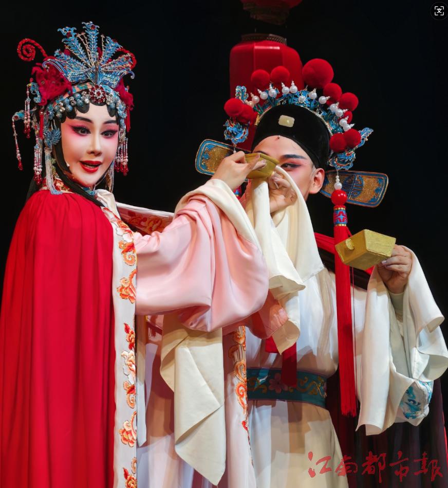 在《南柯記》中飾演瑤芳公主的朱瑩瑩,是江西省贛劇院的當(dāng)家花旦,這也是她第二次擔(dān)綱湯顯祖“臨川四夢(mèng)”的女主角。“上一次是在2016年排演的《邯鄲記》中飾演崔氏。”采訪中記者還獲悉,除朱瑩瑩飾演女主角外,她的弟弟朱英杰也在劇中飾演契玄一角。朱瑩瑩透露,他們出身贛劇世家,家中三代人均為贛劇演員。“自幼耳濡目染,對(duì)贛劇舞臺(tái)自然心生向往與熱愛。作為青年演員,我們也有責(zé)任肩負(fù)起傳承贛劇的重?fù)?dān)。”當(dāng)晚,在“江西文化藝術(shù)基金2023年度資助一般項(xiàng)目贛劇《南柯記》結(jié)項(xiàng)演出”的后臺(tái),記者看到身著戲服的朱英杰正為登臺(tái)做準(zhǔn)備,他表示作為一名贛劇演員,能站在江西省贛劇院新建成的大舞臺(tái)上演出,內(nèi)心無比激動(dòng),“我們將繼續(xù)努力,堅(jiān)守贛劇藝術(shù)傳承之路”。