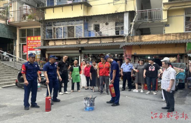 江南都市報(bào)訊 應(yīng)秀梅、劉志洲、全媒體記者李巧攝影報(bào)道:7月2日,上饒市信州區(qū)東市街道箭道巷社區(qū)聯(lián)合東市微型消防站,將一堂別開生面的消防課堂搬進(jìn)了煙火氣十足的菜市場(chǎng)。在這里,消防員就地取材,以菜場(chǎng)常見的電器短路隱患為切入點(diǎn),手把手向商戶們傳授實(shí)用的“滅火器使用秘籍”。