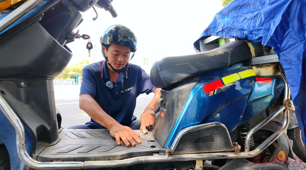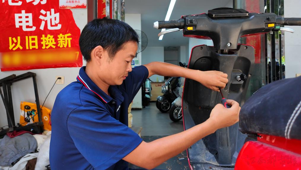 夏日的南昌市紅谷灘區(qū)長江路,蟬鳴陣陣。7月1日下午,沿街的一家電動車店內(nèi),正在忙碌的店主徐勇軍,被一陣手機鈴聲打斷手頭的工作。“勇軍啊,我的車子半路沒電了,來幫我看下啵?”電話那頭傳來熟悉的求助聲。“哦,可以哦,你告訴我位置……”話音剛落,徐勇軍便利落地收拾好幾樣維修工具,跨上電動車,向著求助地點疾馳而去。