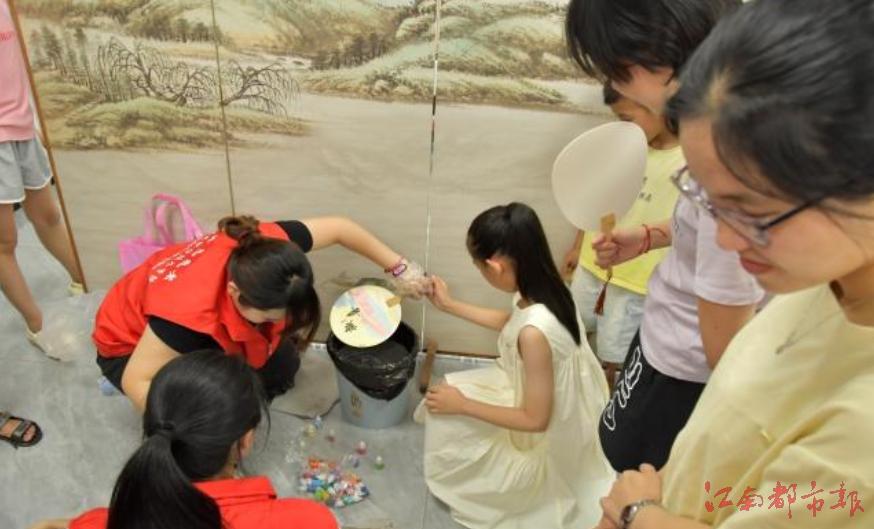 隨后,實(shí)踐隊(duì)與小朋友們開展了趣味手工活動(dòng)。在志愿者指導(dǎo)下,孩子們用黏土制作水果,盡情釋放童真創(chuàng)意。漆扇制作體驗(yàn)活動(dòng)中,孩子們?cè)诹私馄嵘葰v史與工藝后,制作出色彩斑斕、圖案各異的漆扇,在心中種下非遺傳承的種子。通過多種形式的活動(dòng),志愿者為文坊鎮(zhèn)的文明實(shí)踐注入新活力。