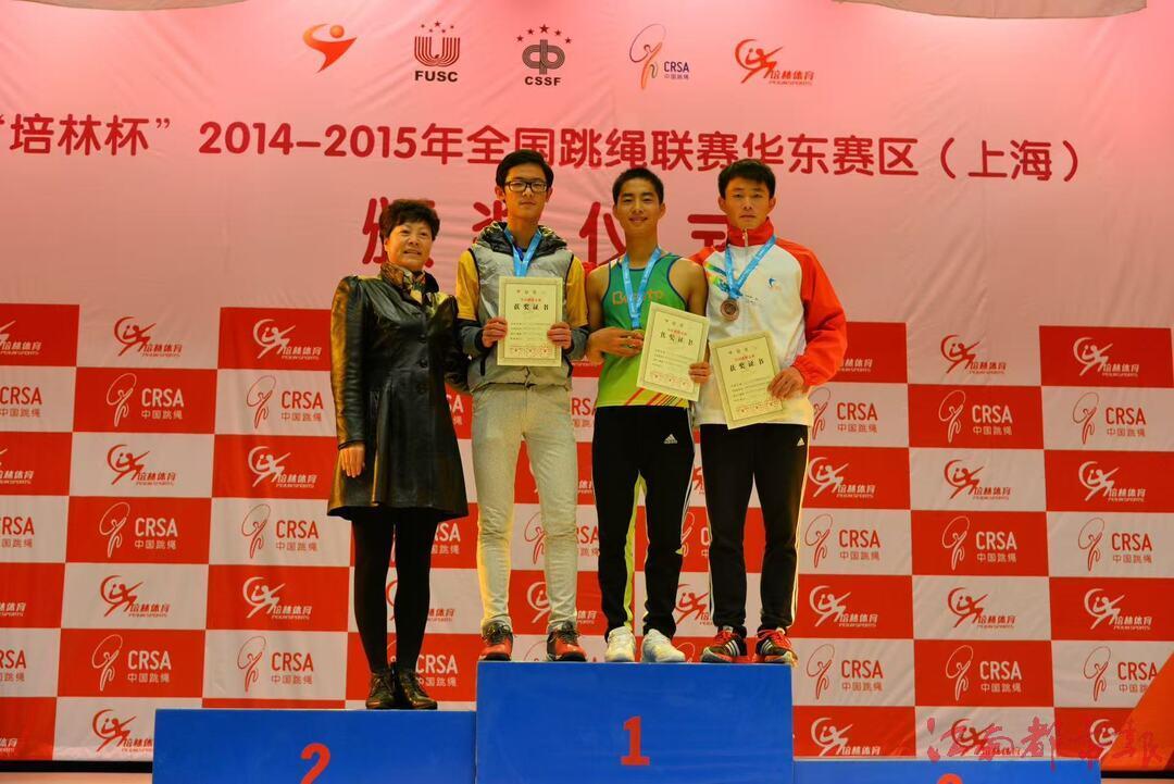 ▲2014年,劉超龍?jiān)谌珖?guó)跳繩聯(lián)賽中奪冠。In 2014, Liu Chaolong won the national jump rope championship.