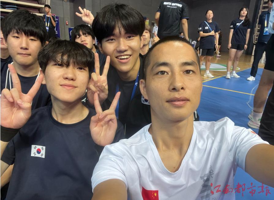 ▲劉超龍與韓國(guó)運(yùn)動(dòng)員合影。A photo of Liu Chaolong with a South Korean athlete.