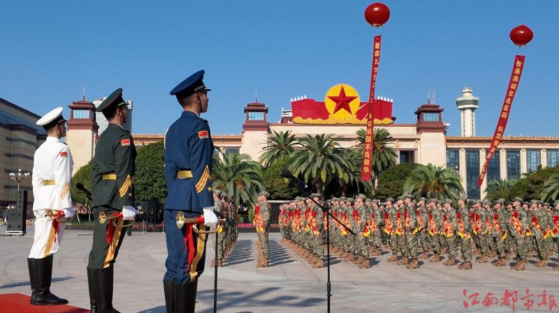 在南昌八一廣場,一場以“紅土地吹響出征號、英雄城走出英雄兵”為主題的新兵歡送儀式在此舉行?;顒蝇F(xiàn)場,500名預(yù)定新兵身著戎裝、胸戴大紅花整齊列隊,來自江西省軍區(qū)某隊的司號員現(xiàn)場吹響出征號,廣大新兵堅定報國志,從容邁過從戎門奔赴軍營。