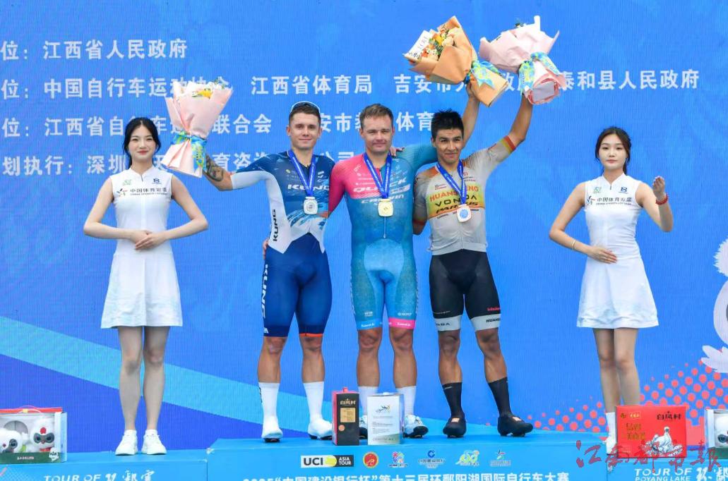在本賽段的激烈角逐中,最終成績塵埃落定:快客職業(yè)車隊的馬?。∕artin LAAS)憑借出色發(fā)揮勇奪第一名;深圳KUNG洲際車隊的羅斯托夫采夫(Sergei ROSTOVTSEV)緊隨其后,獲得第二名;桓盛-VONOA-泰山體育洲際隊的波拉諾斯(Cristian David PITA BOLANOS)則摘得第三名。而在榮譽衫的歸屬上,本賽段與前賽段相比,并未產(chǎn)生任何變化:大中華最佳(粉紅衫)選手為中國安踏mentech車隊的滕耕;爬坡王(圓點衫)為德國助力車隊的馬特海斯;沖刺王(橙衫)為中國安踏mentech車隊的瓦赫特拉;最佳青年運動員(白衫)為荷蘭瓦爾肯堡公園酒店車隊的贊登·范;最佳個人總成績(藍衫):成都DYC洲際隊的里庫諾夫,他同時也是上一屆環(huán)鄱賽的個人總冠軍。
