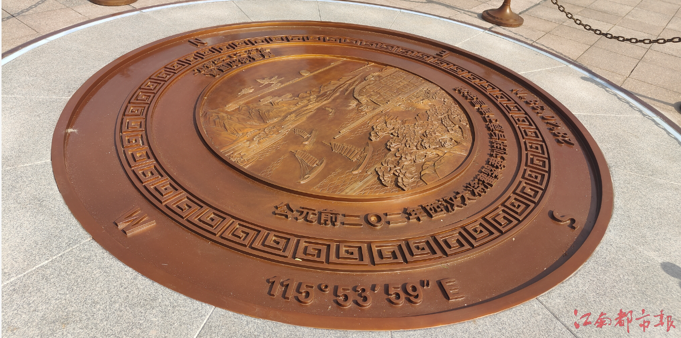 付剛介紹,南昌城市原點(diǎn)分為內(nèi)、中、外三圈,每一圈都蘊(yùn)含著獨(dú)特的意義。外圈標(biāo)識(shí)了南昌的經(jīng)緯度、方位等地理信息內(nèi)容;中圈雕刻了“公元前二0二年西漢大將灌嬰奉劉邦旨意于南昌筑城”等字樣,揭示南昌城市的歷史由來;內(nèi)圈則是一幅精美的山水主題浮雕,展現(xiàn)了贛江、鄱陽湖、梅嶺等元素,生動(dòng)呈現(xiàn)了南昌“山江湖城”的地理風(fēng)貌。此外,城市原點(diǎn)的外圈及中圈還采用中國(guó)傳統(tǒng)裝飾紋樣云雷紋裝飾,體現(xiàn)古樸厚重的文化底蘊(yùn)。