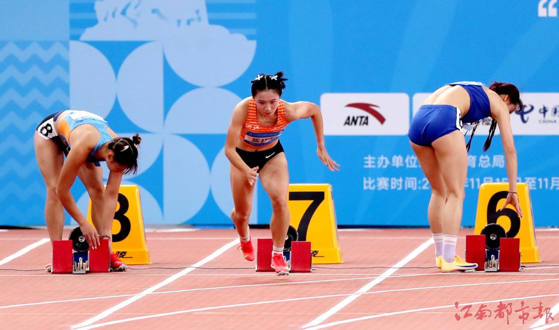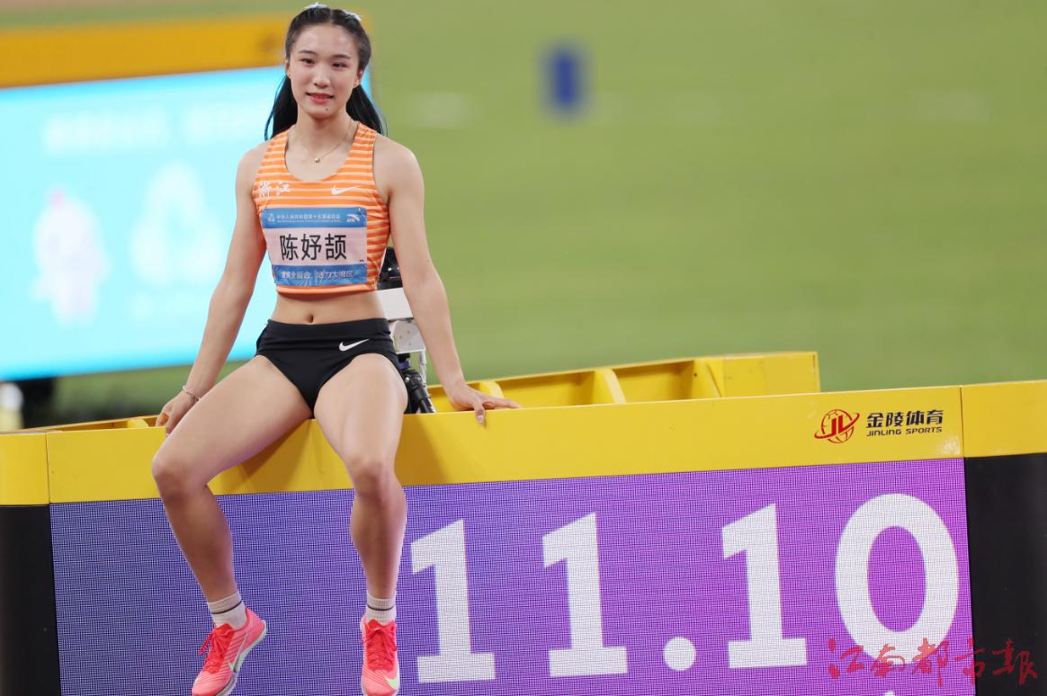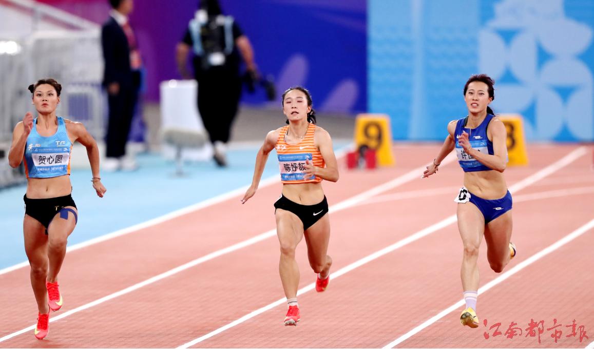 江南都市報(bào)訊 全媒體特派記者許南平攝影報(bào)道:11月17日晚,第十五屆全國(guó)運(yùn)動(dòng)會(huì)田徑賽場(chǎng)迎來(lái)男女百米“飛人大戰(zhàn)”。由于當(dāng)晚男子100米和女子100米要先后進(jìn)行復(fù)賽、決賽,在兩個(gè)小時(shí)左右要連跑兩槍,對(duì)很多選手來(lái)說(shuō)都較為艱苦。最終,在女子百米大戰(zhàn)中,浙江的“小孩姐”陳妤頡跑出11秒10,以較大的優(yōu)勢(shì)奪得女子100米冠軍,打破亞洲U20青年紀(jì)錄的同時(shí),也獲得個(gè)人首枚全運(yùn)會(huì)金牌,同時(shí)成為全運(yùn)會(huì)歷史上最年輕的女子百米冠軍!