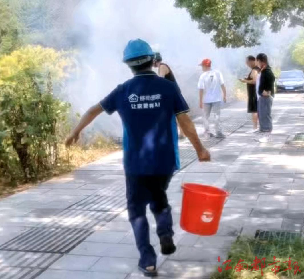 與此同時,他充分利用自己對所負責(zé)片區(qū)“責(zé)任田”的熟悉程度,立即想到距離火場約200米處有一個自助洗車點。劉衛(wèi)和飛奔而至,借來兩個大型水桶,利用自己的電動車作為運輸工具,往返多次運水滅火。